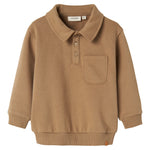 Wat een super comfortabele super zachte polo sweater is dit van Lil'Atelier voor de boys. In een prachtige bruine camel tint Sepia tint. Helemaal on trend! Super leuk met bijpassende sweatpants.
