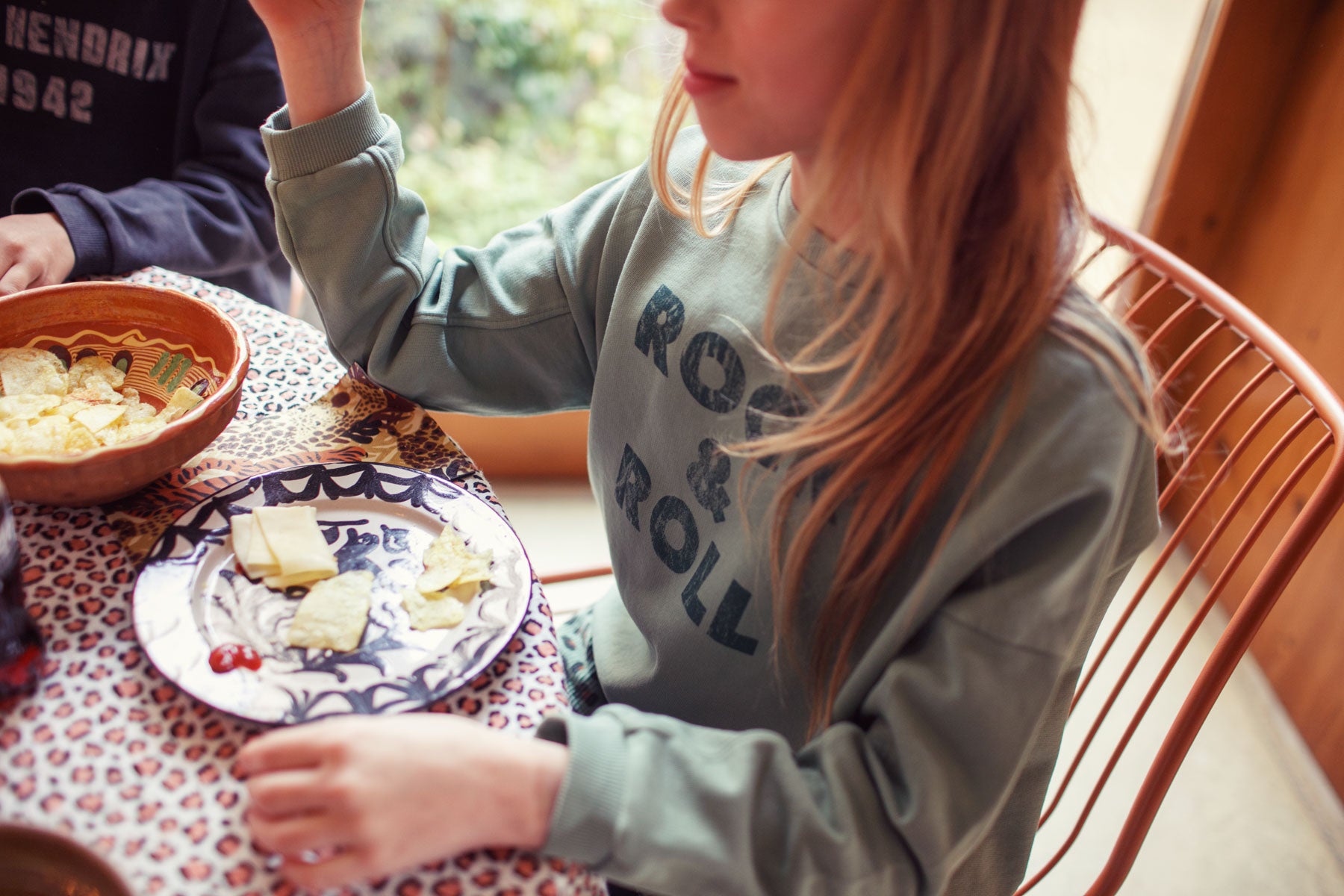 Groene sweater met Rock&Roll print van Piupiuchick. Voor stoere jongens en meiden.